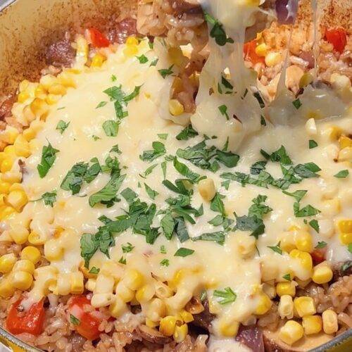 If you’re craving something cozy, cheesy, and packed with flavor, this Cheesy One-Pot Steak and Corn Fried Rice is here to save the day. It’s savory, slightly sweet from the corn, hearty thanks to tender steak, and topped with gooey, melty mozzarella that brings it all together.