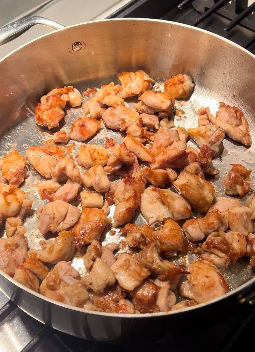 - 5 boneless chicken thighs - cut into bite-sized pieces